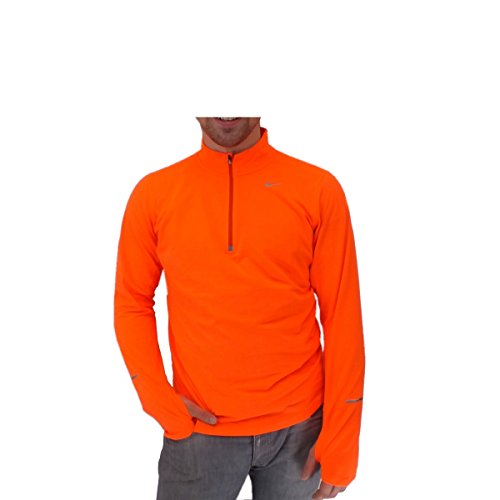 Nike DriFit equipment and running long sleeve shirt for men with moisture-regulating functional stay warm technology for the best - whether running training during cooler times. Details: stand-up collar with zip and chin guard; Low-friction Flat seams; Comfortable Raglan sleeves;, mottled look and longer cut back yoke; sleeve style with thumb; Material: 88% polyester, 12% elastane.